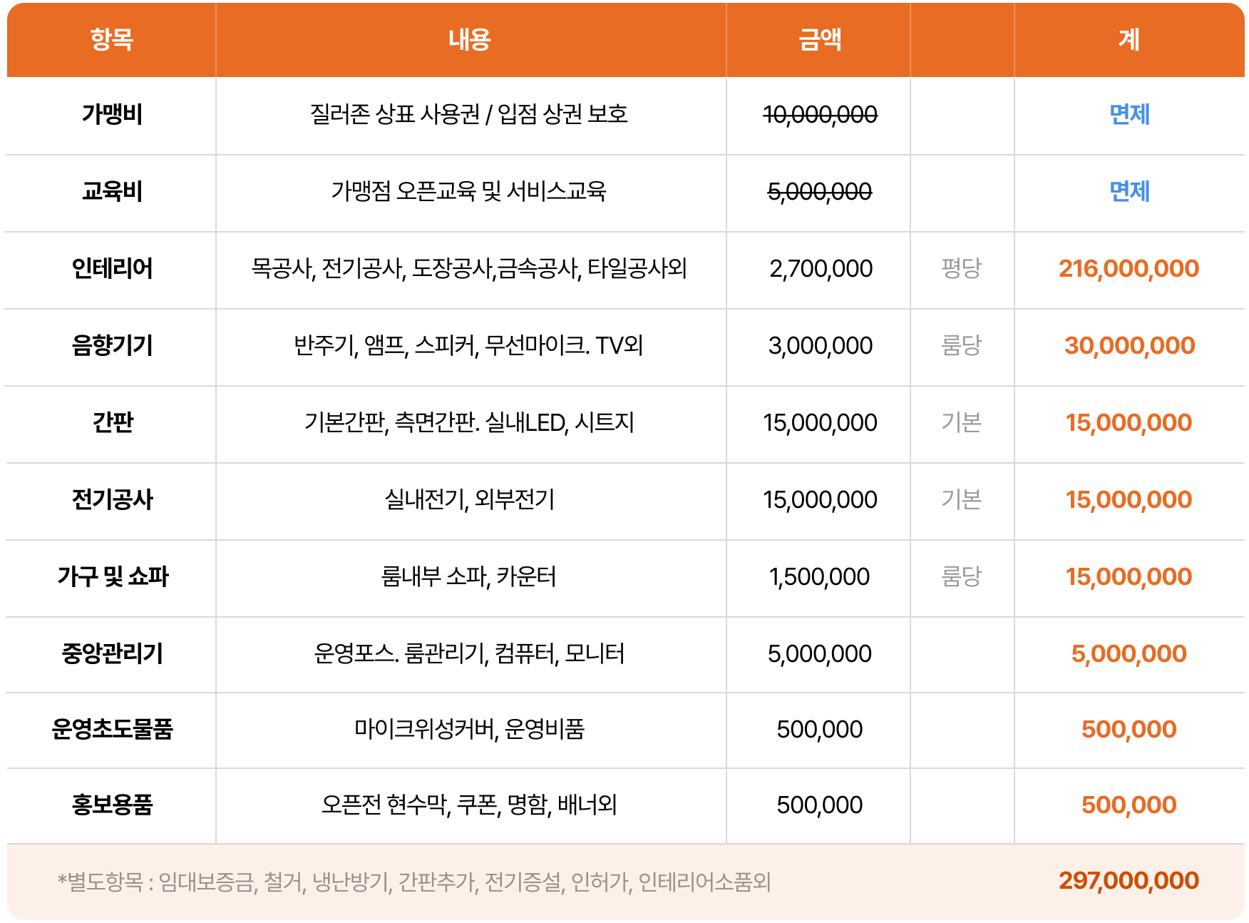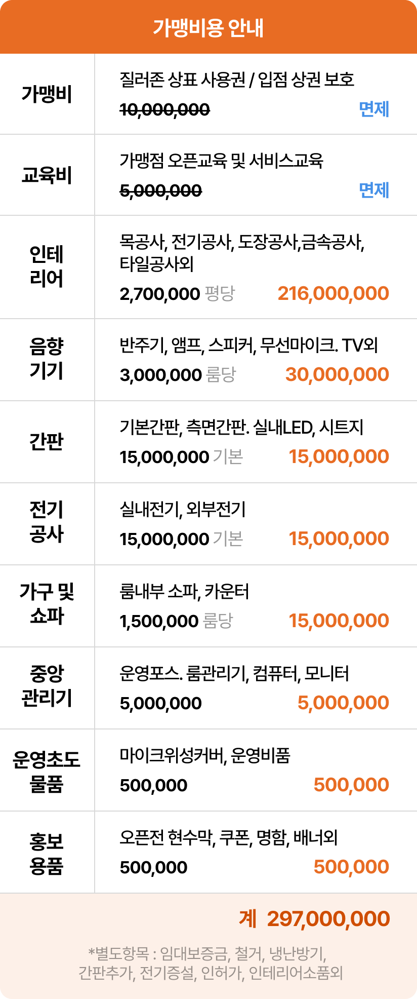 가맹비용 안내 (룸10개, 80평기준)